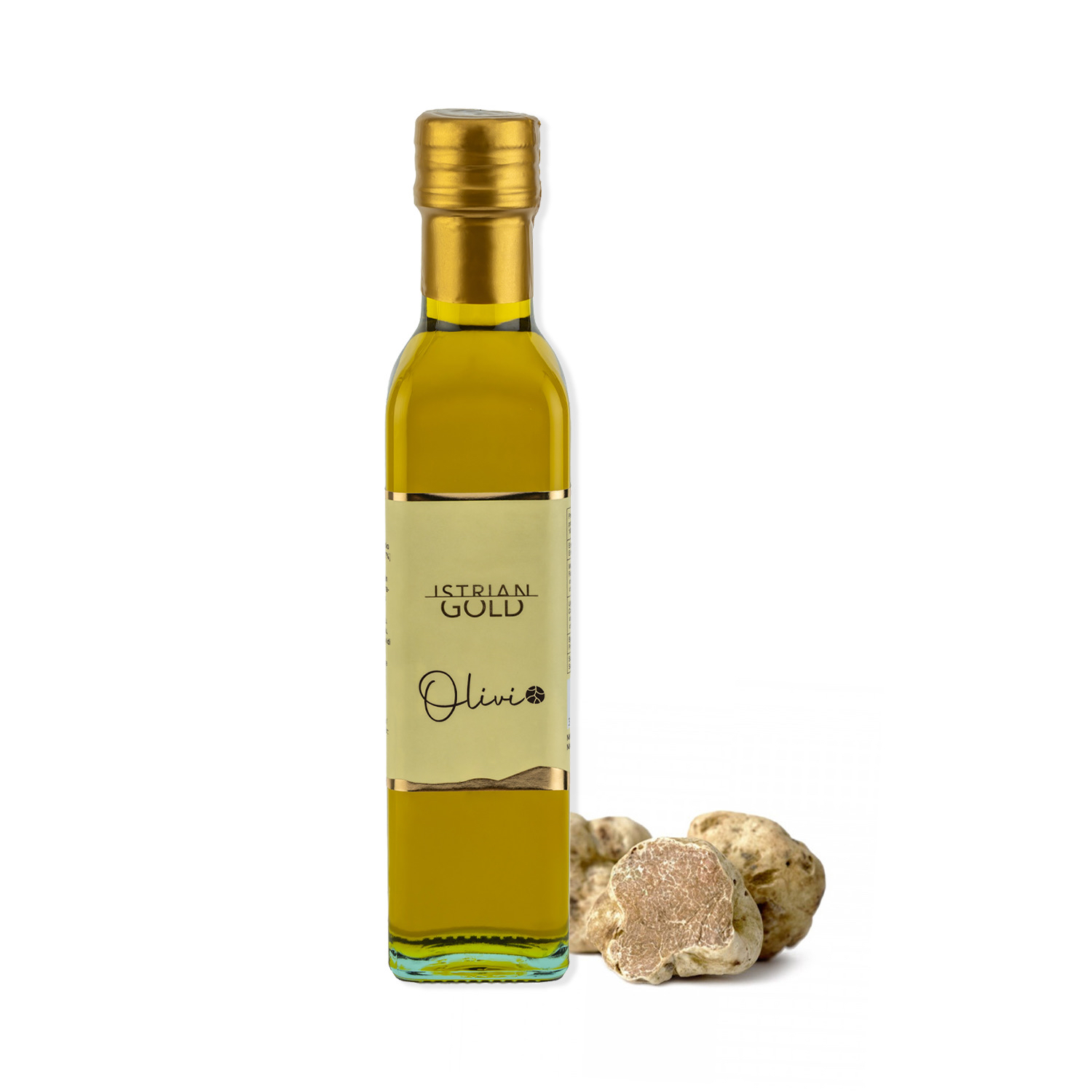 Maslinovo ulje oplemenjeno aromom bijelog tartufa. Nekoliko kapi dovoljno je da jednostavna jela postanu gourmet iskustvo – od jaja i rižota do pizze i mesa. Čista elegancija u tekućem obliku.